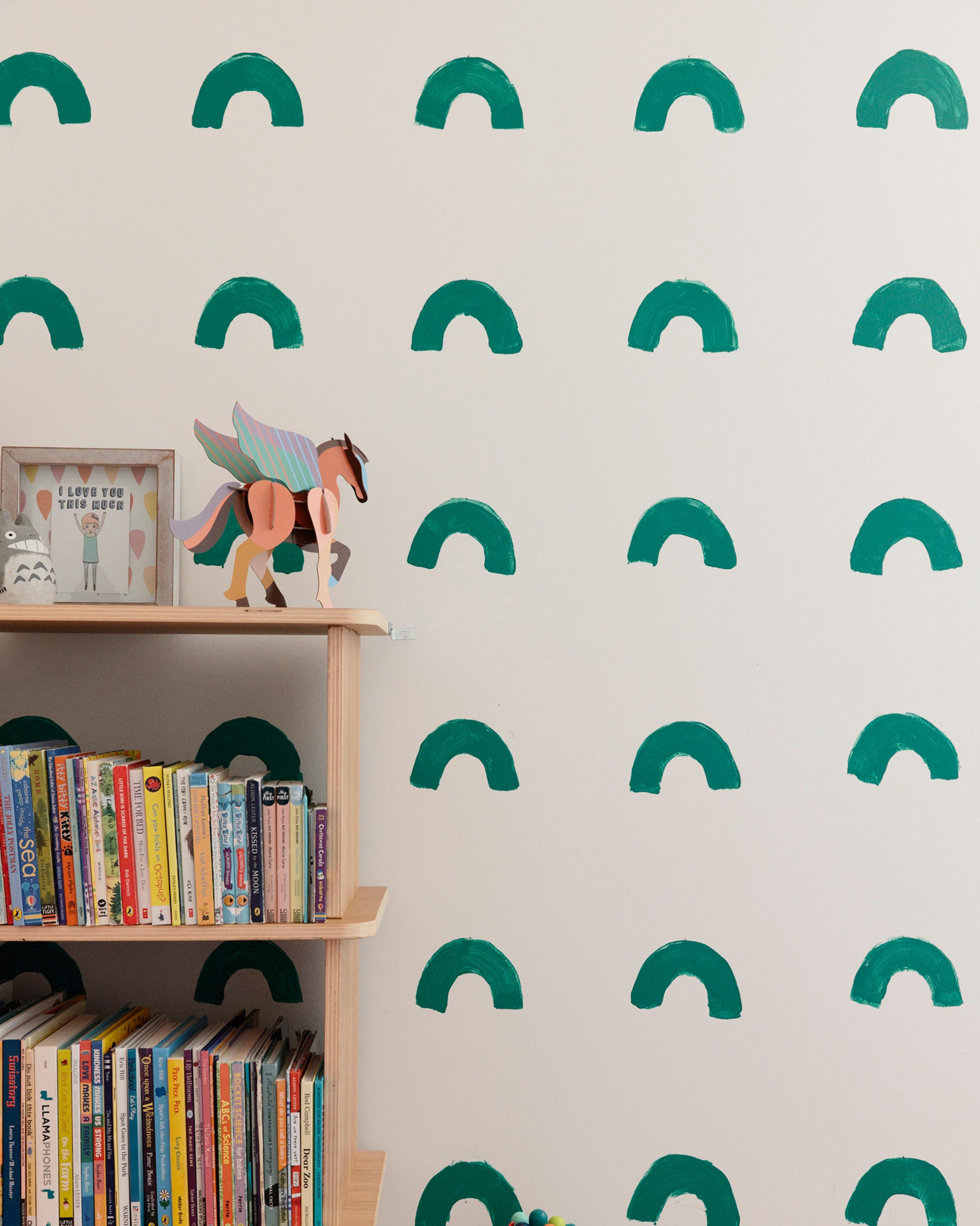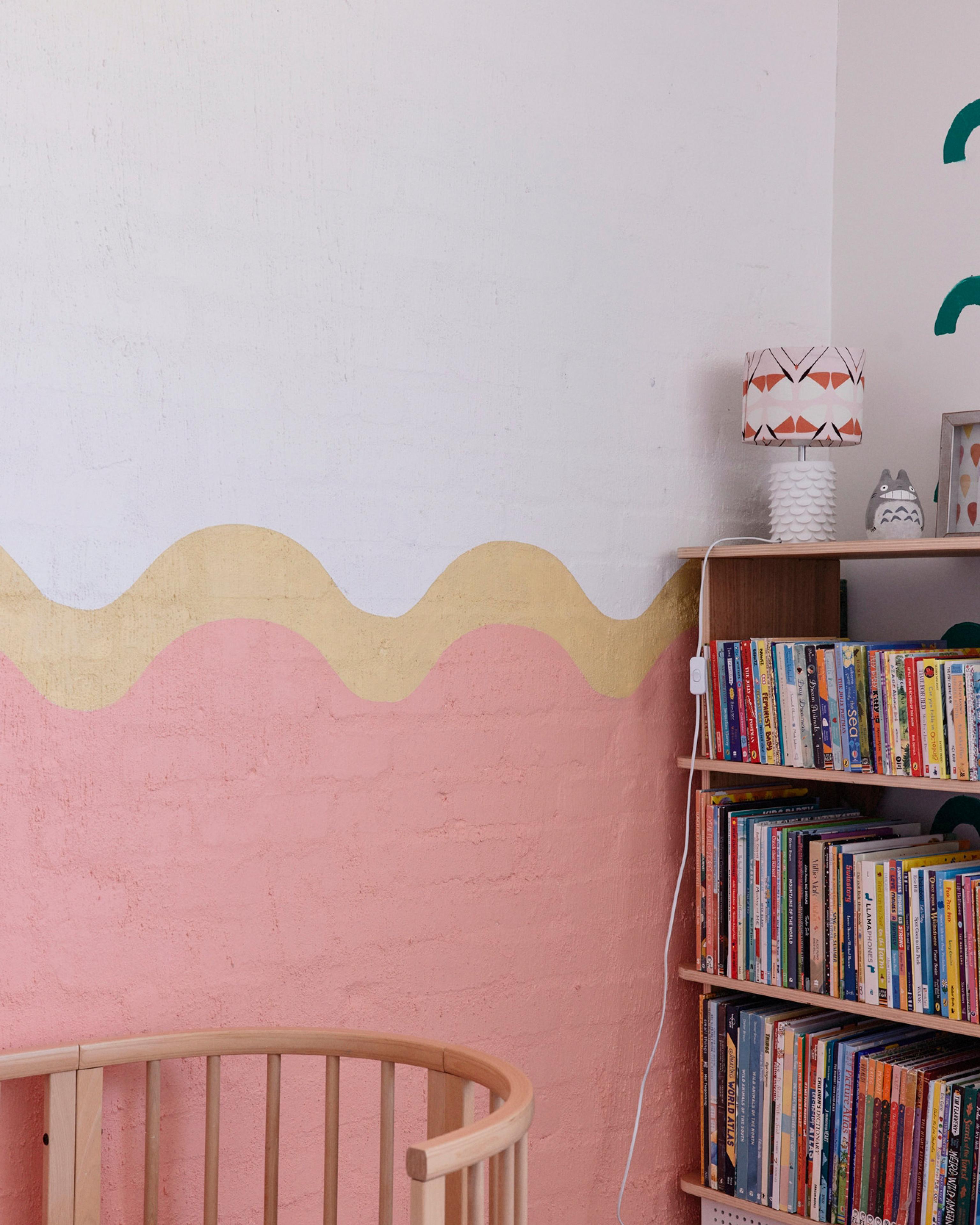 The first thing you notice when entering Anna and Dan’s townhouse is the streaming of natural light; the second is colour. Applied in considered modulation, colour washes the home in a kaleidoscope of joy. A glass coffee table in a technicolour film accentuates the touch points all around that reflect each colour of the rainbow. A striped red and pink frilled tablecloth converses with a peach gingham plant pot across the room. Green bursts pepper the length and breadth of the home's ground floor, complimented by garden outlooks on either end. Upstairs, more striped frills abound in bed linen. At the same time, wallpaper and murals introduce a characterful charm and playfulness tempered by oak, exposed brick, terracotta and concrete, and carefully considered applications so that this home remains softly vibrant without falling off the edge into juvenility. It is a home that perfectly carries the expressions of the young family of four living here.