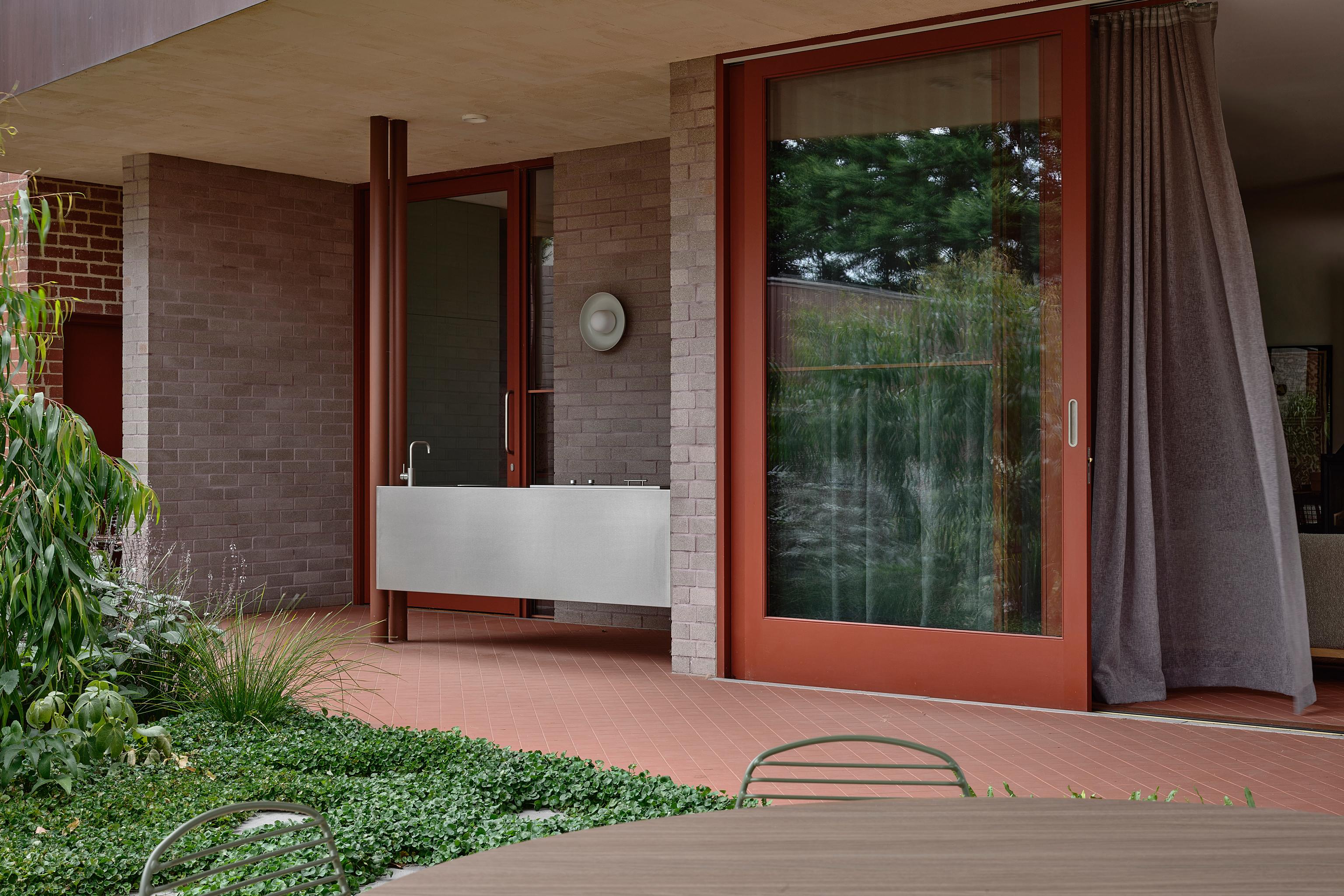 In contrast to the much-divided 1990s extension, the owners were looking for a larger and more fluid open space that would bring the family and friends together. “They regularly hold functions at home so it was important that the kitchen and living areas could also spill onto the terrace,” says Woodward, pointing out the terracotta tiles that extend from the kitchen and living areas to the wrap-around terrace. This terrace now includes a built-in barbeque and a protected eave to diffuse the harsher sunlight.