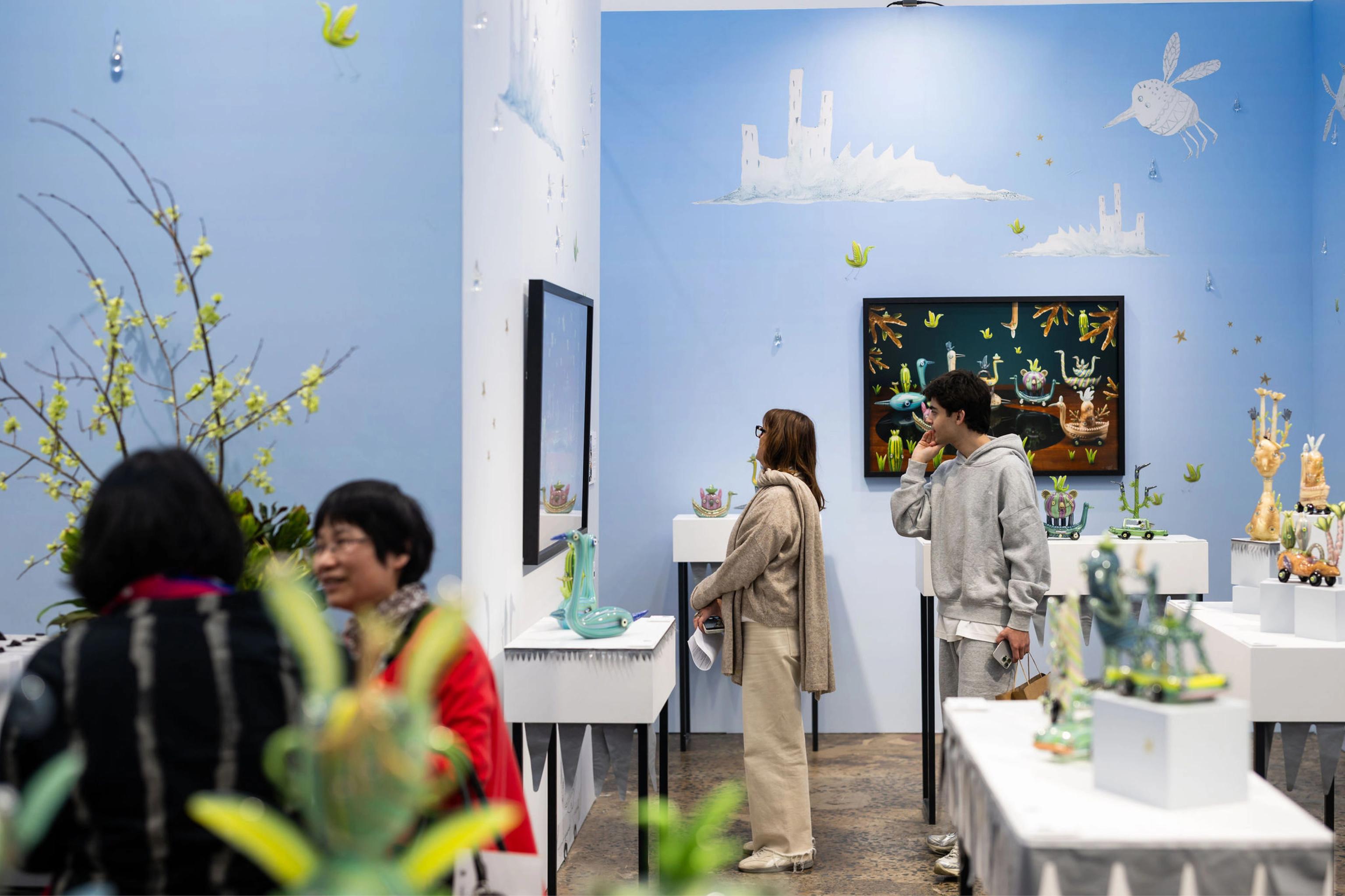 Another highlight was the Futures booth by C.Gallery. Representing Nic Fern and Claudia Lau, it cultivated a beautiful balance between Nic’s language of rainbow weave sat beside two large ceramic wall sculptures by Claudia, tangibly forging a complementary and synchronic dialogue between poetic porcelain hosting the wabi-sabi beauty of 60 different glazes alongside the geometric precision of its composition, and kaleidoscopic textile expressions.