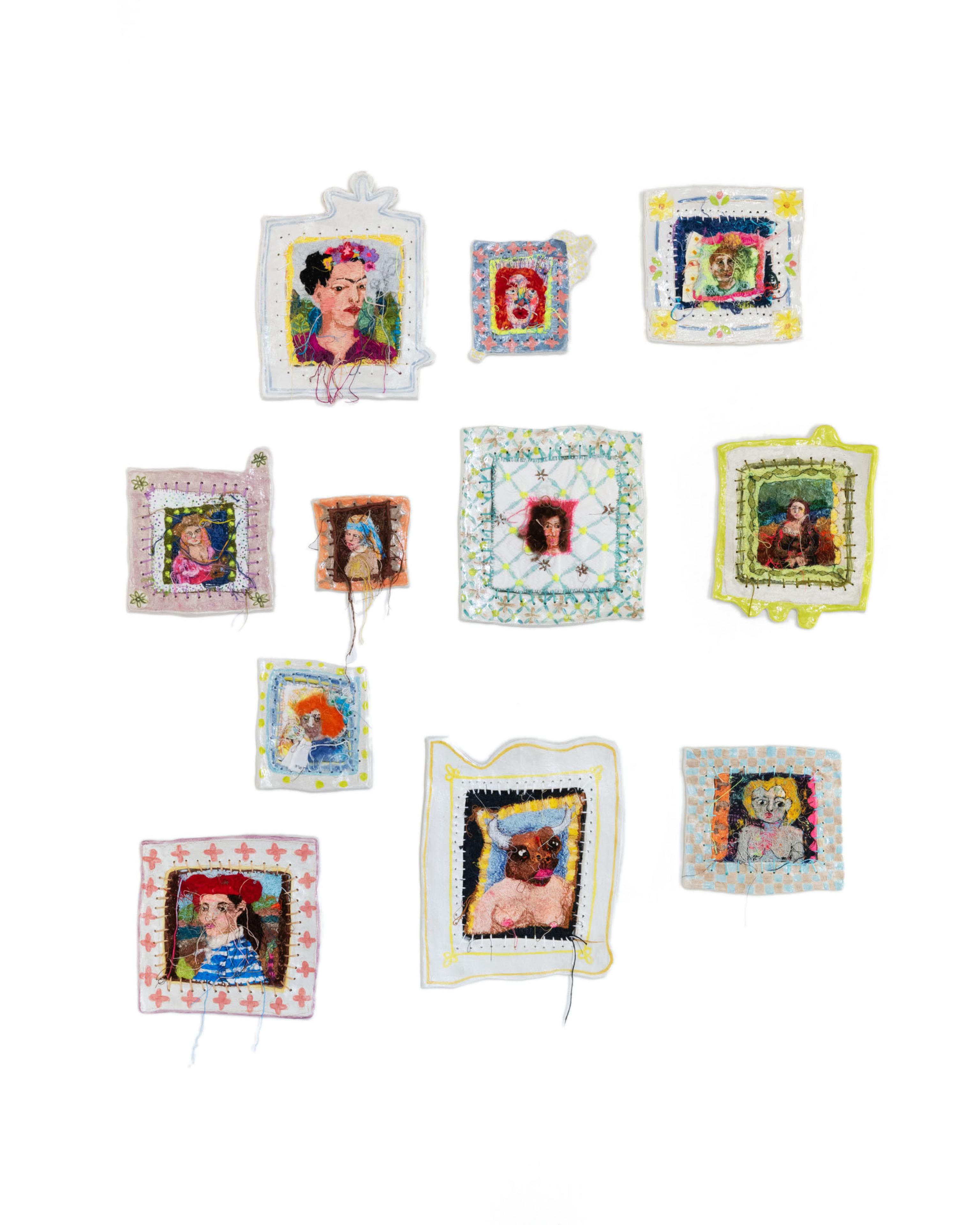 Peata Larkin, Their Names Stories Are Here, 2025. Acrylic on embroidered silk, 125 x 125cm. PAULNACHE, Tūranganui-a-Kiwa/Gisborne, New Zealand
