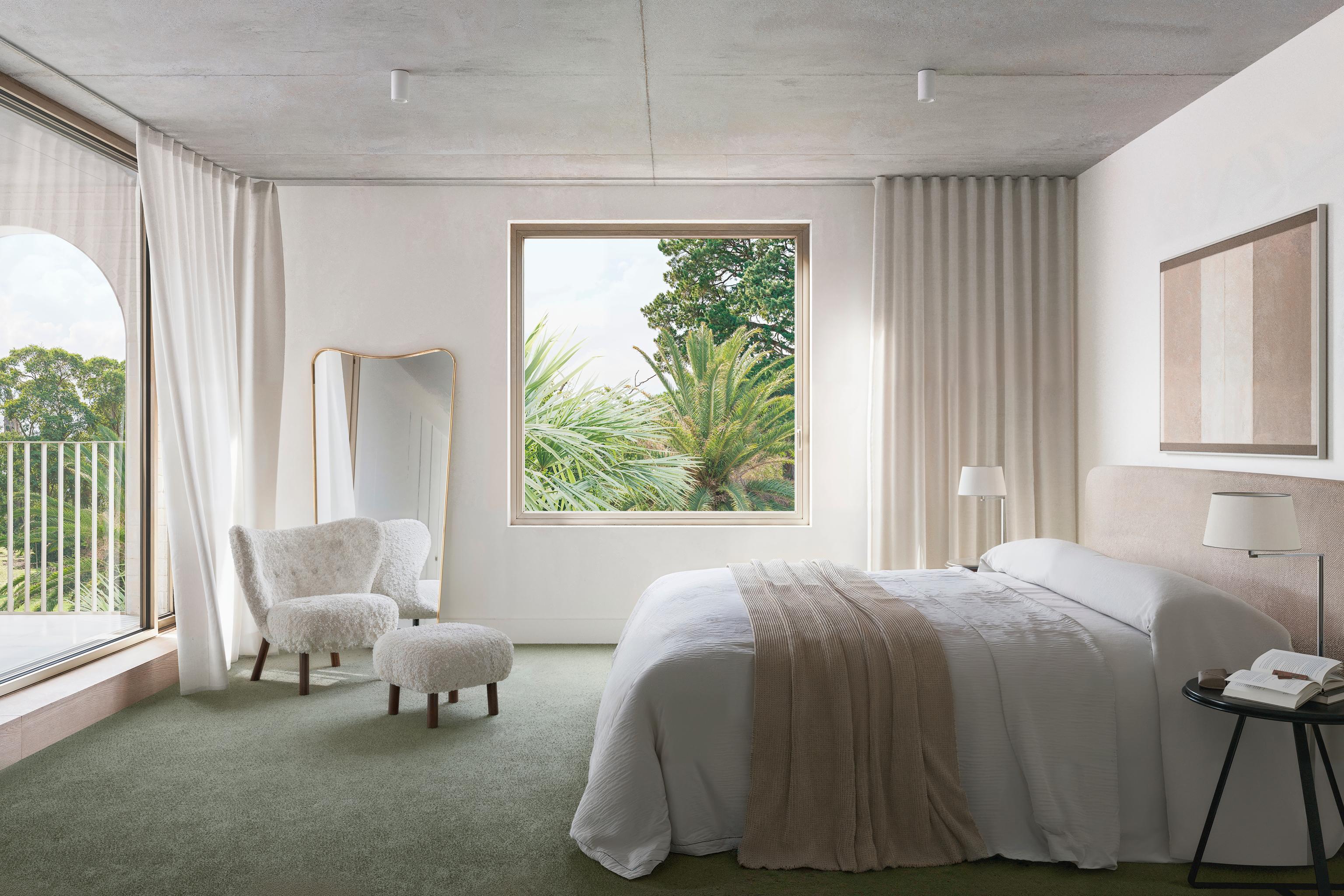 Bedrooms balance privacy and calm with clear outlooks to Alma Park.