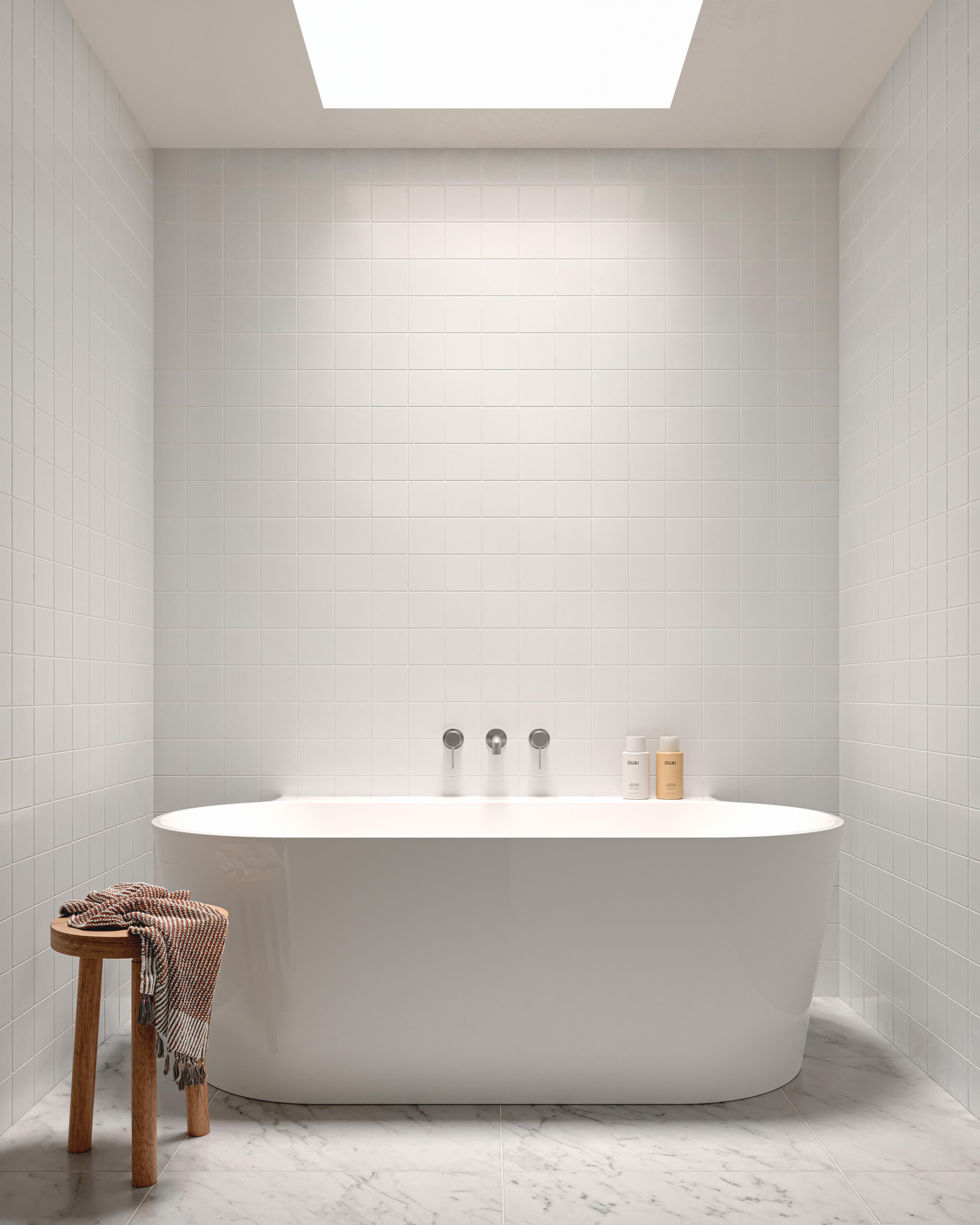 Bathrooms are calming retreats, with select homes featuring skylights.