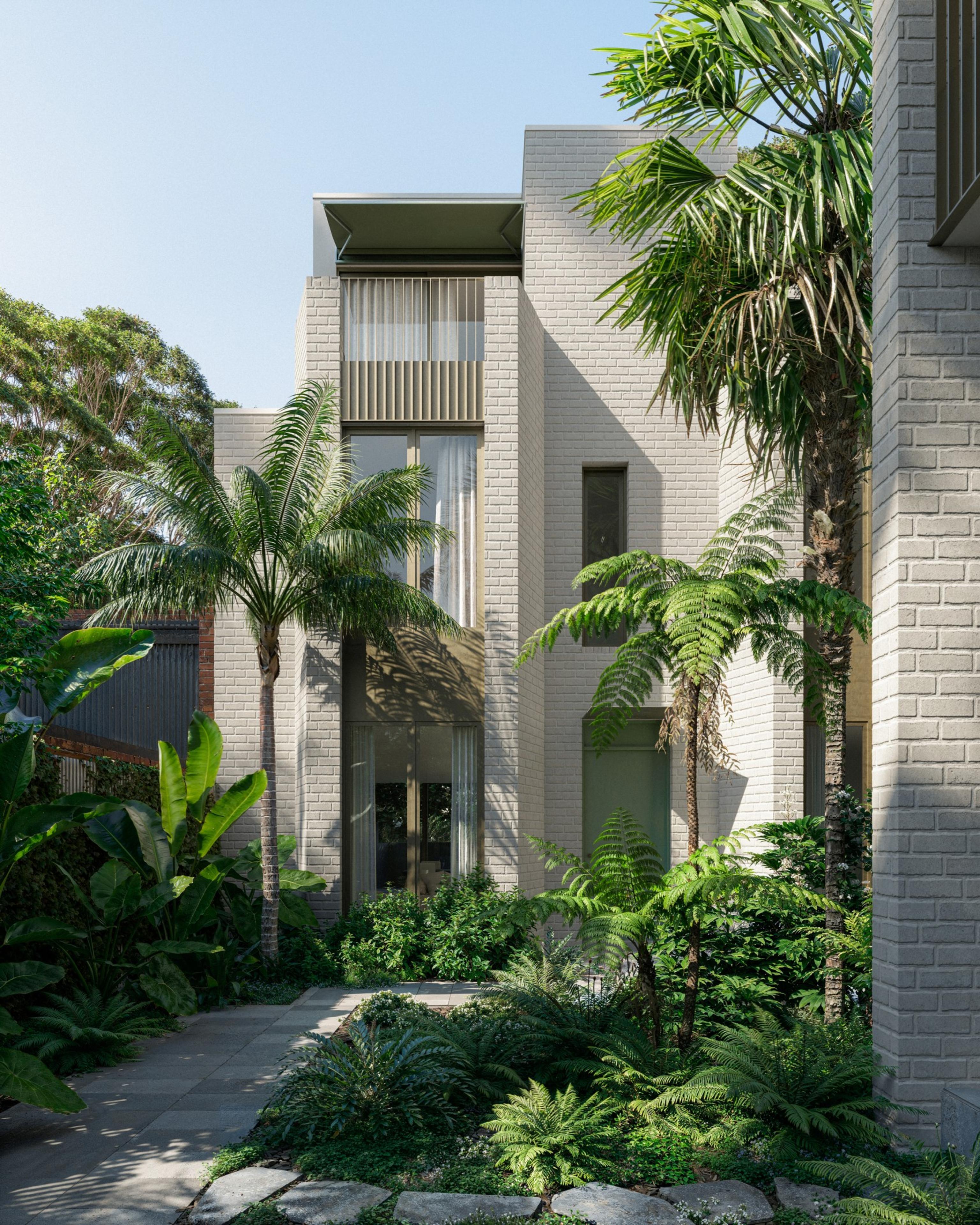 The architecture responds directly to its setting. Drawing from the calm, tree-lined character of the neighbourhood and the open landscape of Alma Park, the building extends this greenery inward, bringing planting into shared and transitional spaces. Drawing on our long-standing experience with townhouse design, these homes have been carefully considered to offer privacy, comfort and a sense of belonging to both nature and neighbourhood.