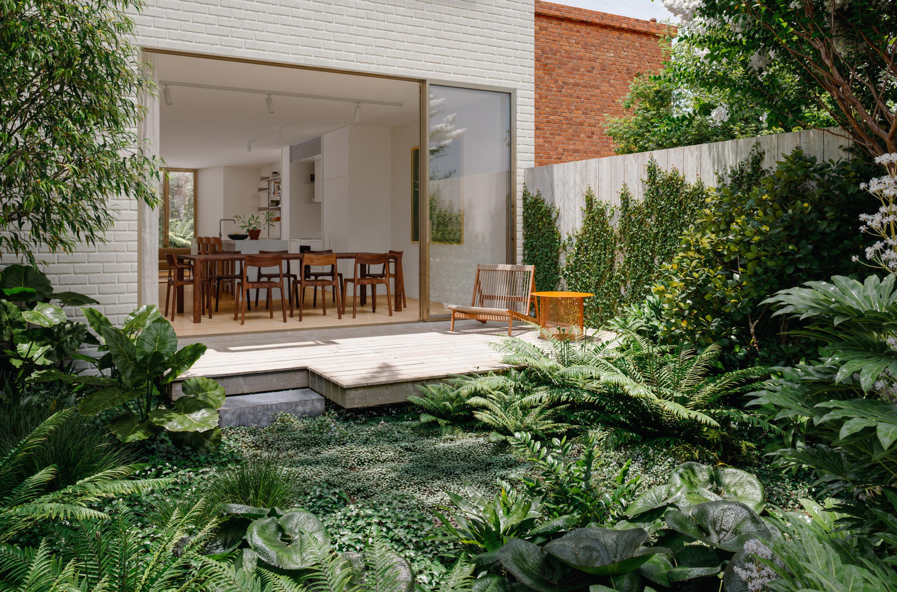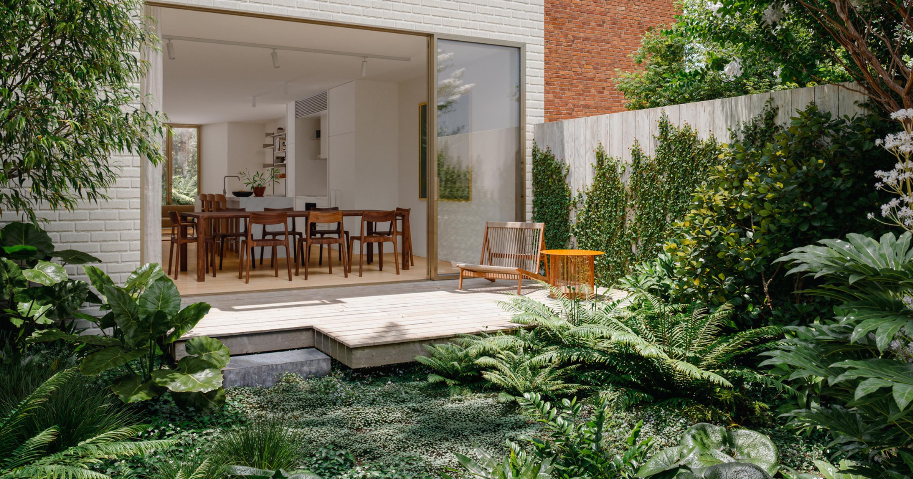 Interiors open up to generous backyards with decks and lush green gardens.
