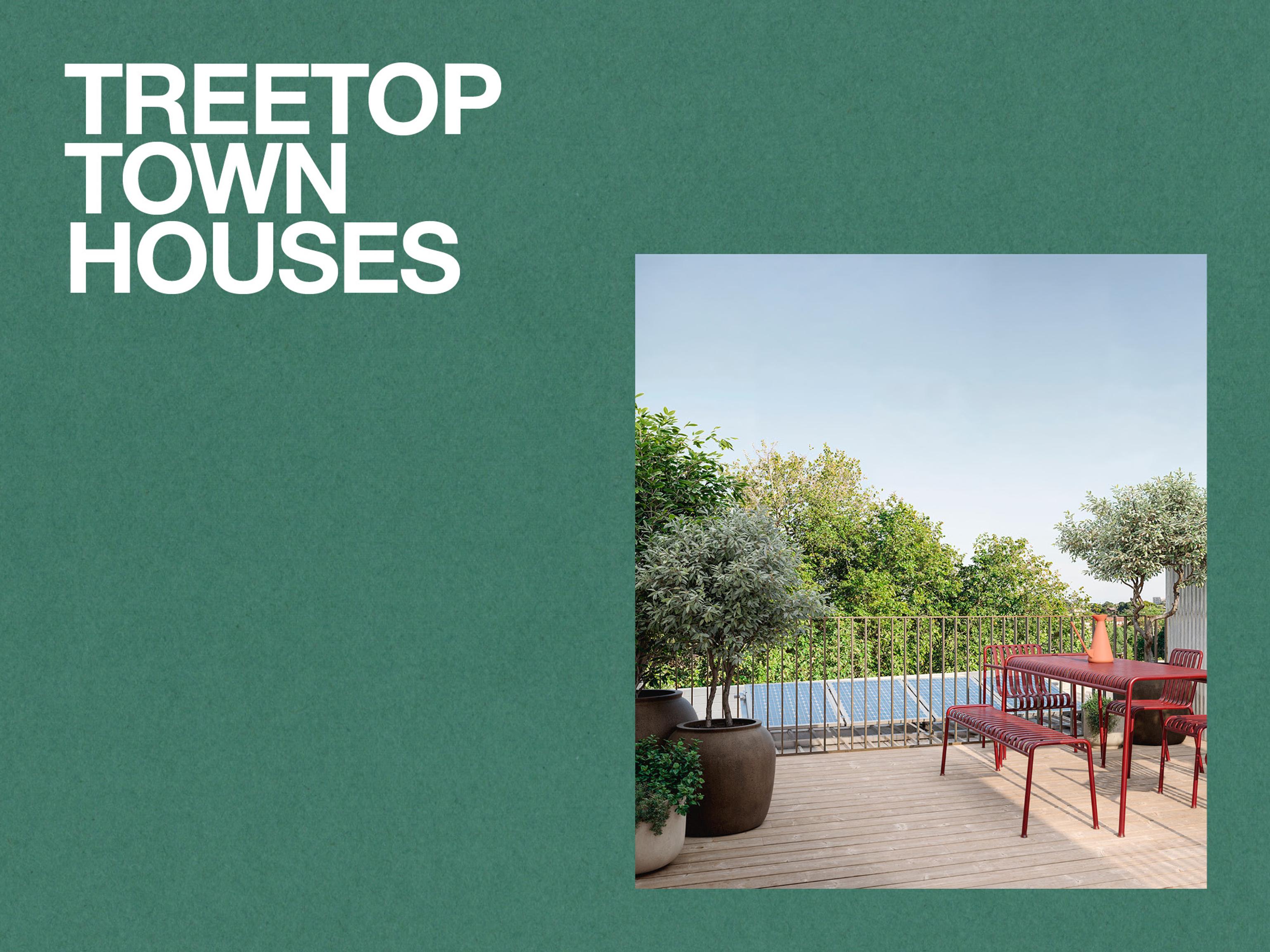 Overlooking a sprawling canopy of mature trees, the Treetop Townhouses position living spaces on the upper floor, enhancing privacy and creating a strong relationship with the beautiful natural surroundings—a connection that’s reinforced by spacious rooftop terraces.
